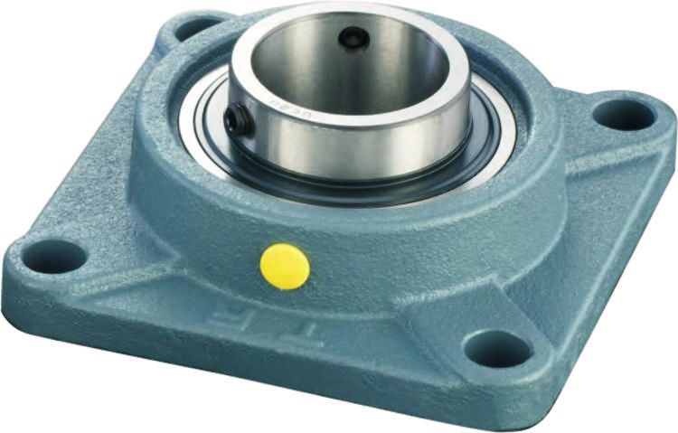 Lager med ett integrerat monteringsfäste (fläns) för enkel fastsättning. Vanligtvis används i kombination med axlar i fasta positioner.