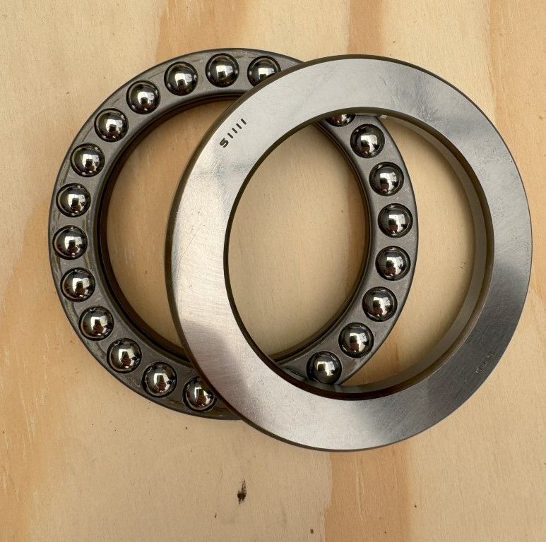 Utformade för att ta upp axiella krafter (parallellt med axeln). Finns både som kul- och rullager. Används i t.ex. vertikala axlar och svängmekanismer.