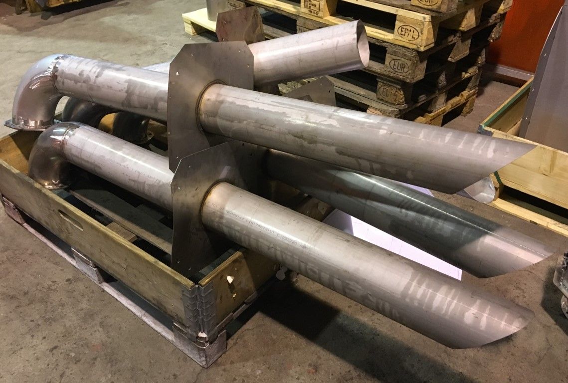 En termometer monteras i denna mättrumma och en psykrometerduk fästs över den. Nedanför termometern finns ett vattenbad som löpande fylls med vatten med ett lämpligt intervall. Mättrumman är isolerad men de anslutande grövre rören behöver isoleras på plats. De olika rördelarna har flänsar i ändarna som skruvas ihop. Vi har silikonpackningar som används mellan flänsarna som tätning.