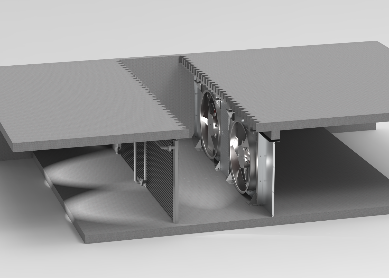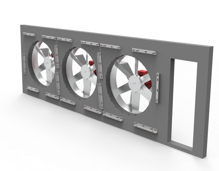 För kanaltorkar används alltid denna typ av fläktväggar eftersom dessa fläktar är enkelverkande och att det alltid är samma luftriktning i dessa torkar.