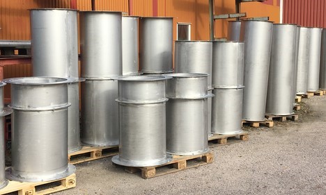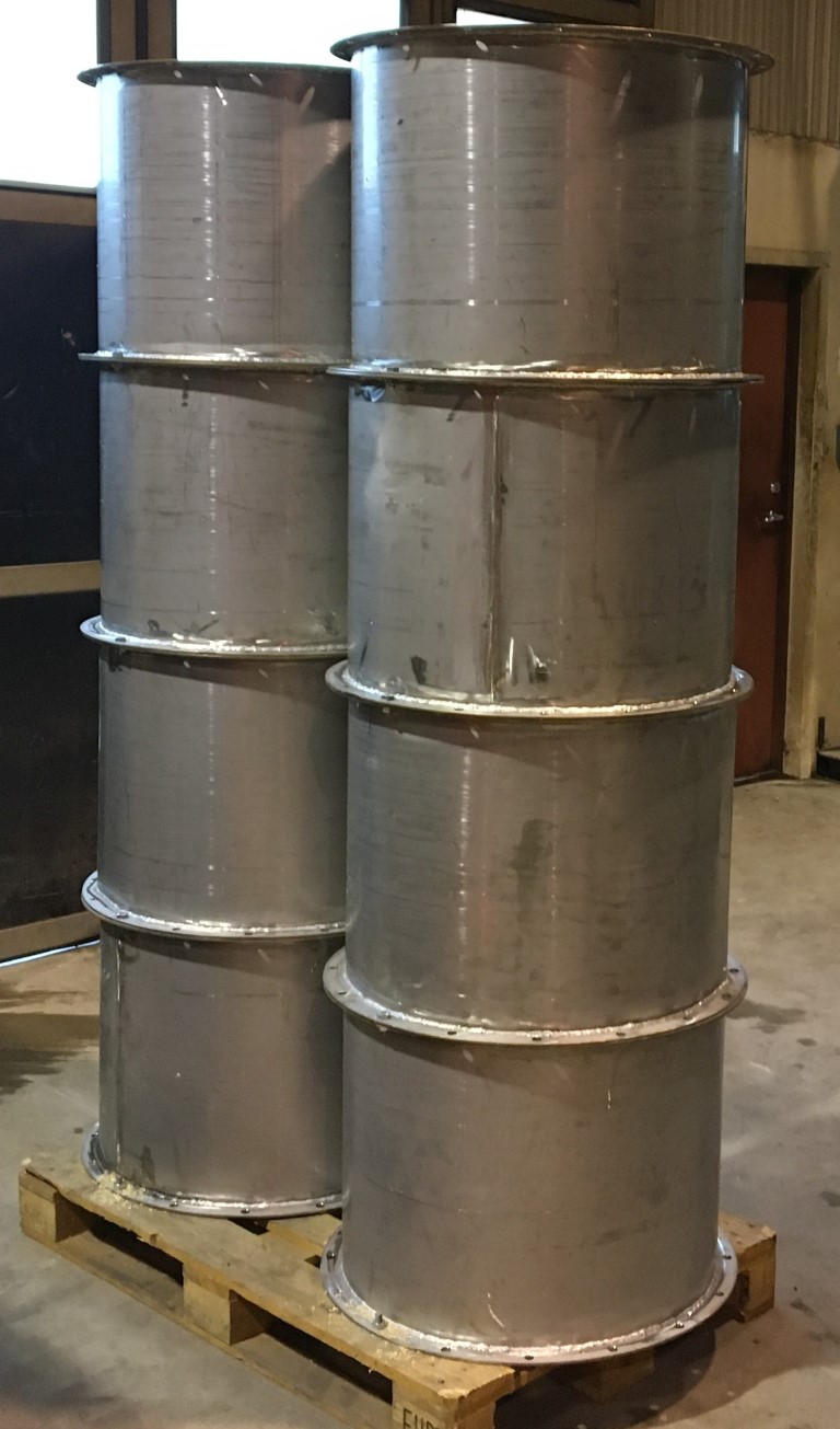 Vi tillverkar olika sorters trummor av rostfritt stål med t=1,5mm och med svetsade flänsar.