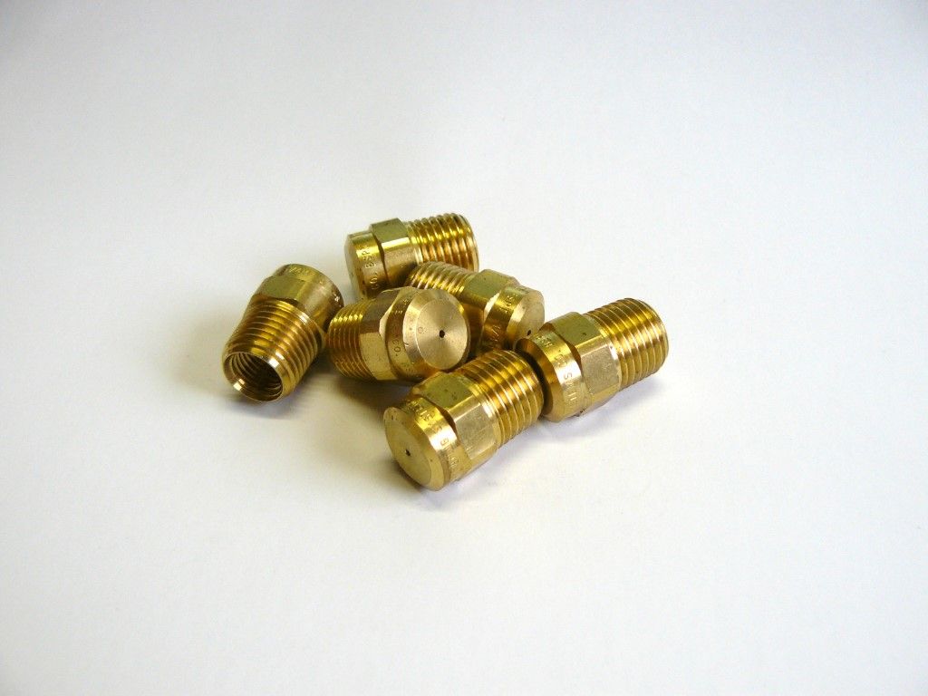 Vi använder dysor från Spraying Systems som tillverkar dysor av hög kvalitet. Det finns många olika storlekar av dessa dysor men de vanligaste är storlekarna 3, 4 och 6 som är värden som anger flödet.