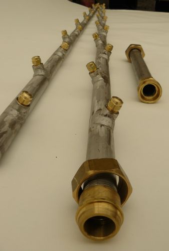 Dessa spridarrör tillverkas i rostfritt stål och i ändarna monterar vi unionskopplingar för att de ska bli enkla att ansluta till varandra. Varje spridarrör är ca 2m långt och det finns där plats med 7 eller 10st dysor.