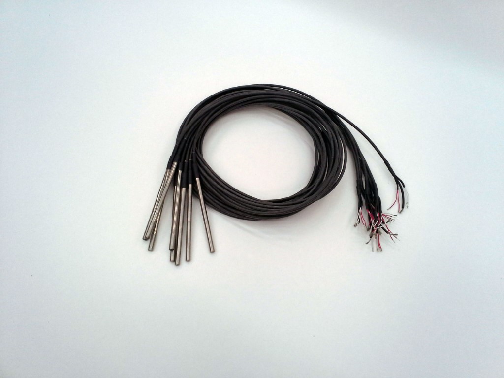 Den består av en rostfri hylsa med diameter 8mm, inuti hylsan finns ett Pt-100 element, hålrummet fylls med gjutmassa. Givarelementet har diametern 1,6mm, ansluts till en skärmad silikonkabel och där lagerhåller vi med längderna 3m, 5m och 15m.