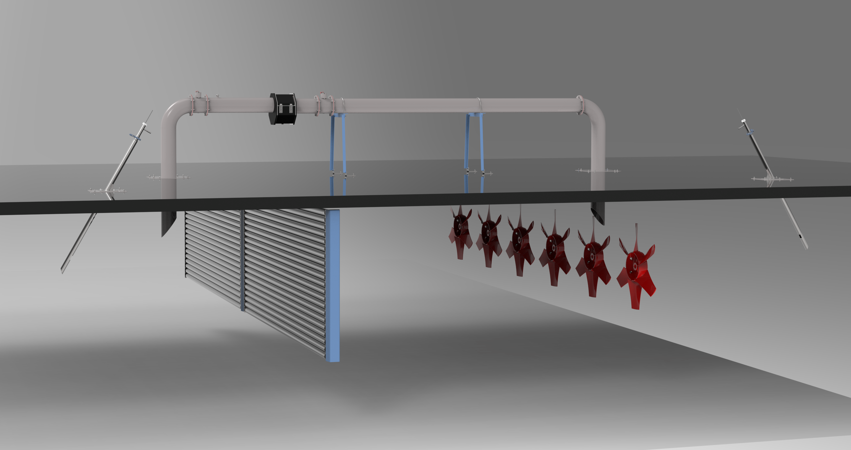 Den ena änden av detta system mäter bortanför fläktarna och den andra bortanför batterierna. Detta leder till att det alltid finns ett luftflöde genom detta system så att den våta temperaturen alltid kan avläsas. I detta trumsystem går det även att mäta den torra temperaturen. På båda sidorna om delen där mättrumman finns har vi också avstängningsventiler som enkelt kan stänga av luftflödet. Detta förbättrar arbetsmiljön mycket då det förhindrar att torkens varma luft kommer upp i mättrumman när luckan öppnas då psykrometerduken ska bytas.