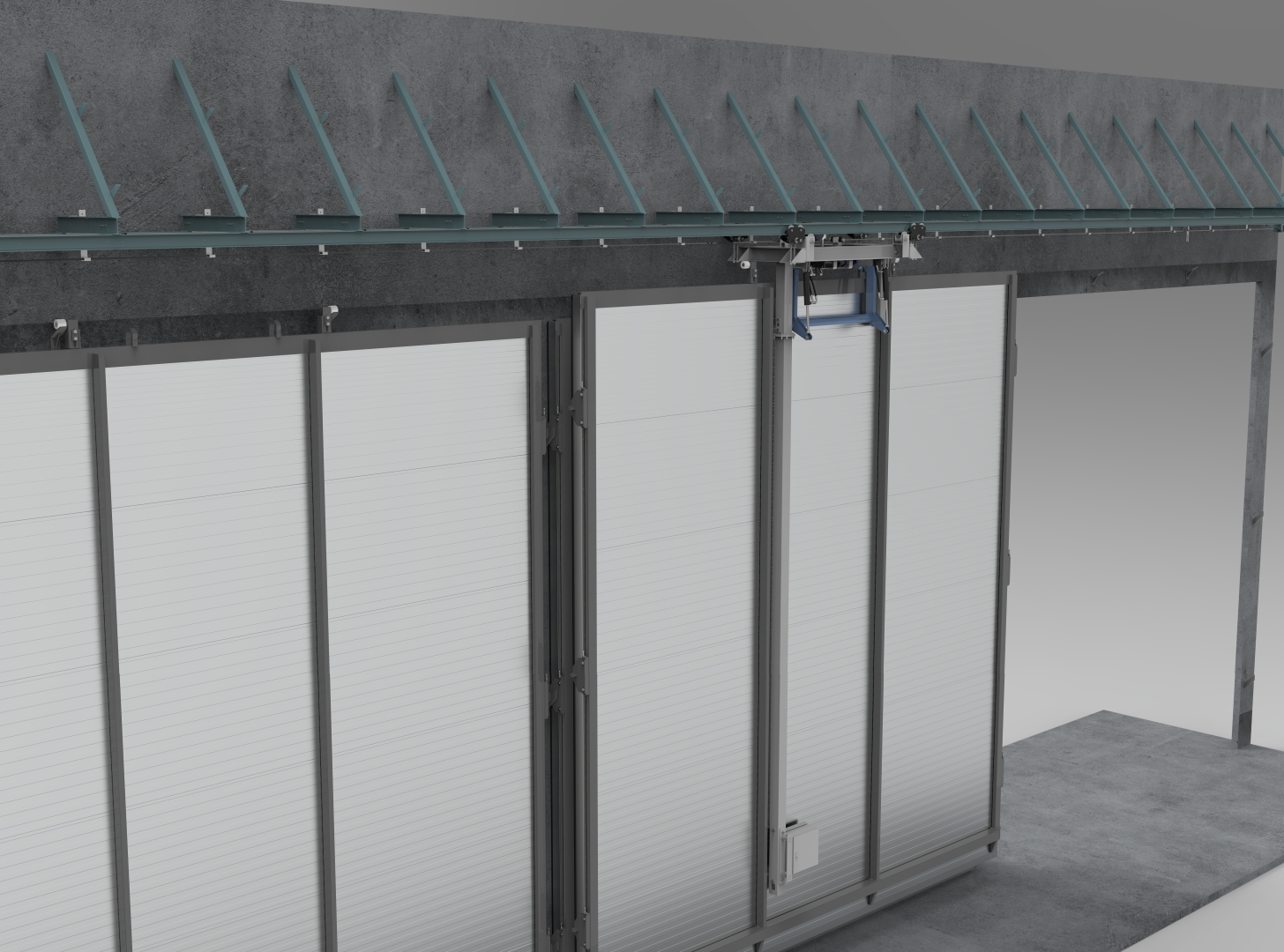 Det är en hydraulisk enhet som löper hängande i två I-/eller H-balkar och lyfter upp och ut porten så att den kan förflyttas utanför en angränsande port. Porten lyfts ut ca 315mm från karmen och kan då passera andra portar med god marginal.