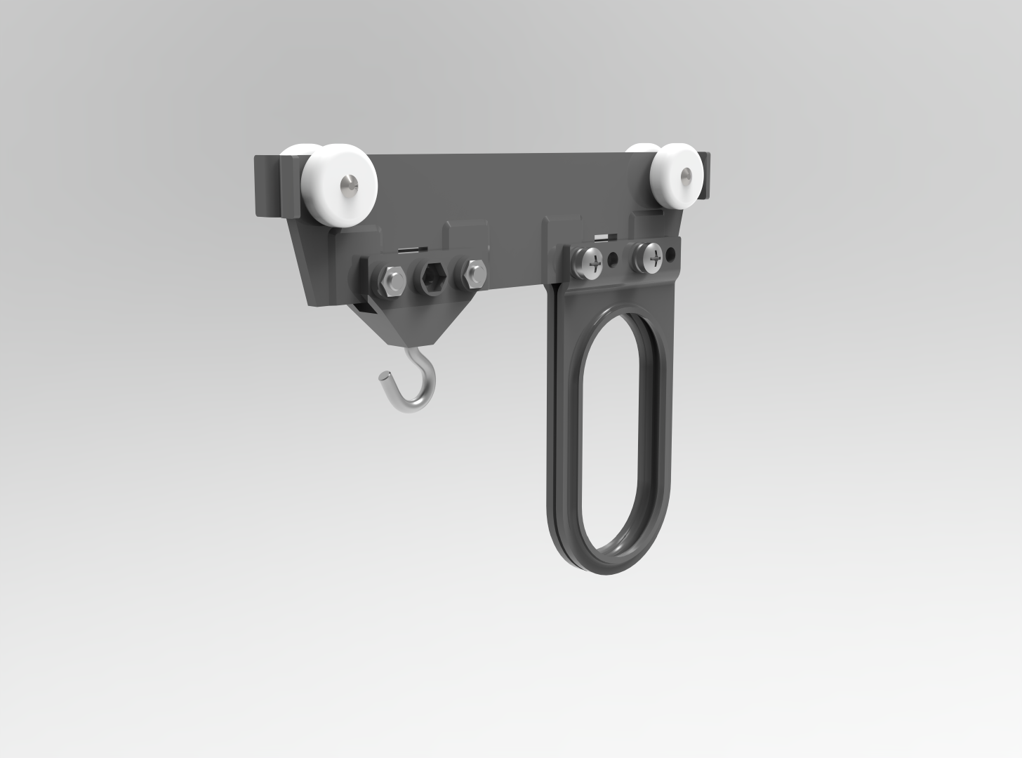 För elmatning till en portlyftare kan vi leverera utrustning. Det innebär bl. a. c-profilskena, medbringarvagn, kabelvagnsmedbringare.
