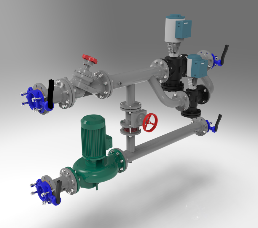 Av säkerhetsskäl vill vi helst använda trevägs- och två tvåvägsventiler för att vid vattentemperaturer över 100⁰C kunna sänka temperaturen i batterierna till en bit under denna temperatur innan någon ska bege sig ned i utrymmet där de finns. På shuntarna finns det även en injusteringsventil, backventil, kilskidsventil och avstängningsventiler. Termometrar finns på shuntarna och flera muffar bygger vi gärna in för nuvarande och framtida givare för att förse styrsystemet med nödvändig information.