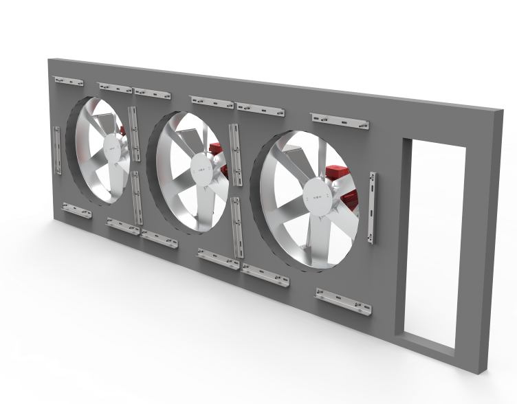 För kanaltorkar används alltid denna typ av fläktväggar eftersom dessa fläktar är enkelverkande och att det alltid är samma luftriktning i dessa torkar.