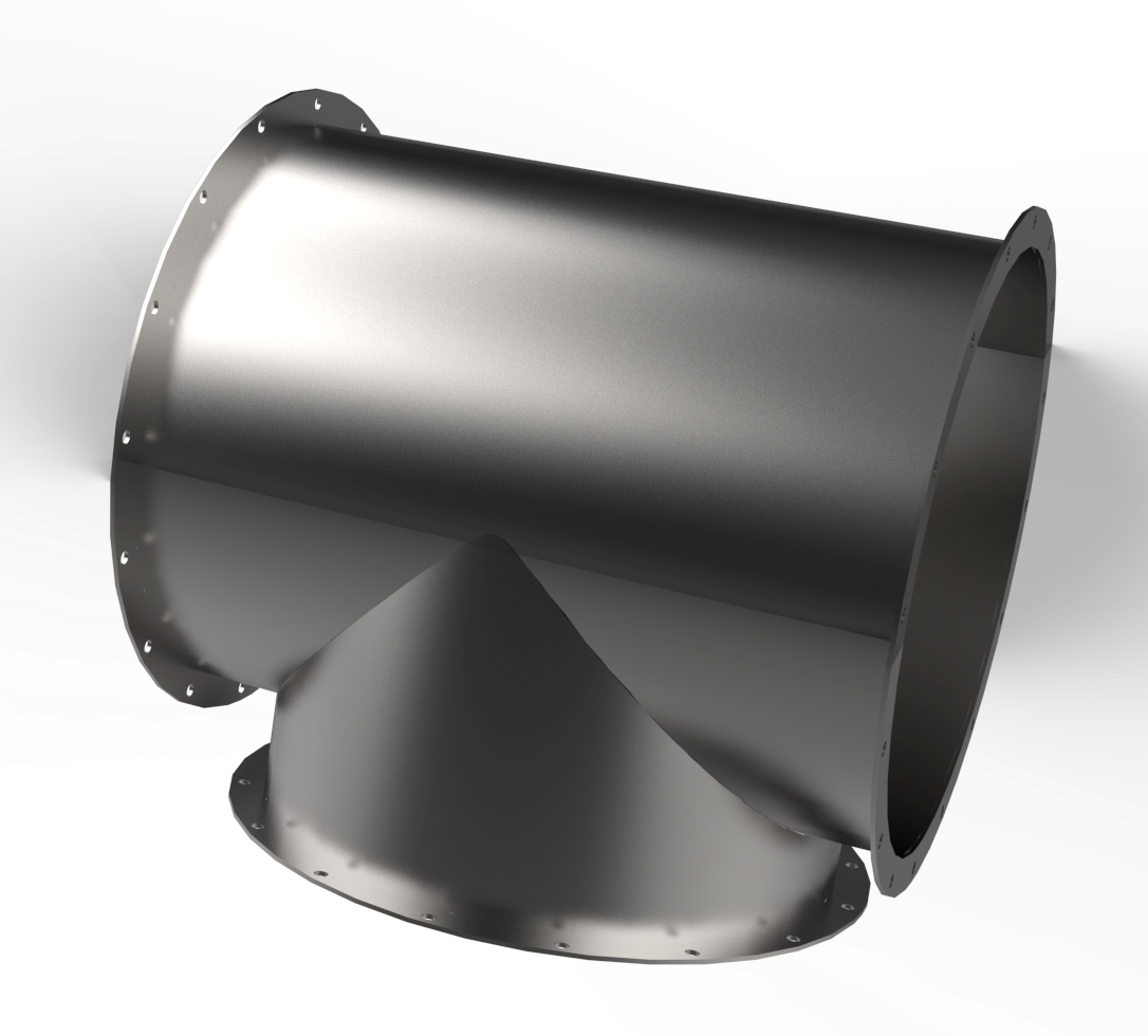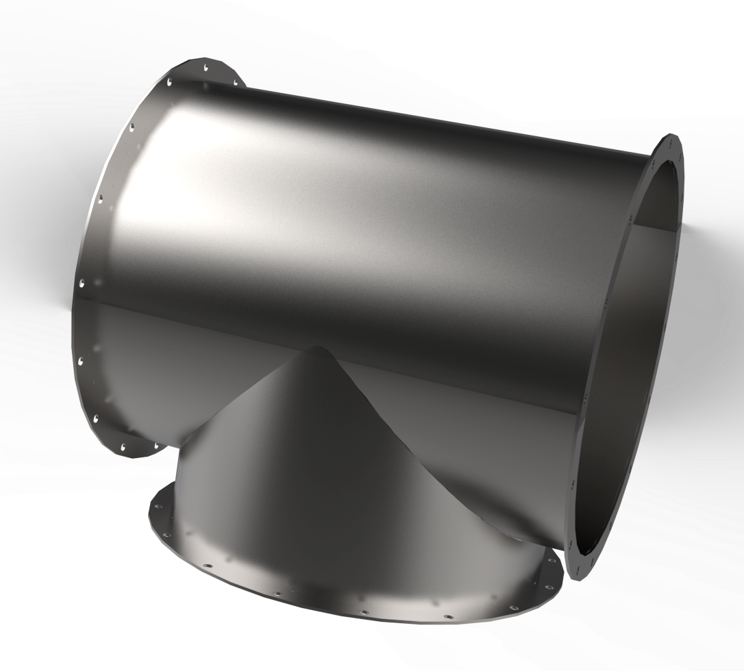 Vi har sådana både isolerade och oisolerade. I dagsläget endast för anslutningen 630mm, men kan snabbt utveckla för andra anslutningar. För bästa hållbarhet tillverkas de i rostfri plåt. Vid isolerade T-rör är det yttersta skiktet i aluminium.